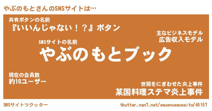 | 男性向けラノベタイトル風あだ名 | 『ヤブノモトアートオンライン』 |