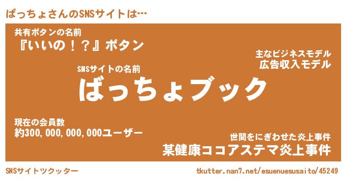 | 胡散臭い通販商品みたいなあだ名 | 『億万長者になれる霊験あらたかなお札…その名も「ばっちょ」』 |