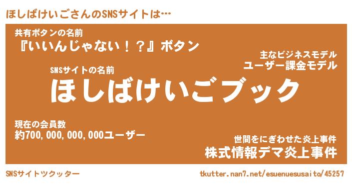 | 胡散臭い通販商品みたいなあだ名 | 『億万長者になれる水晶球…その名も「ほしばけいご」』 |