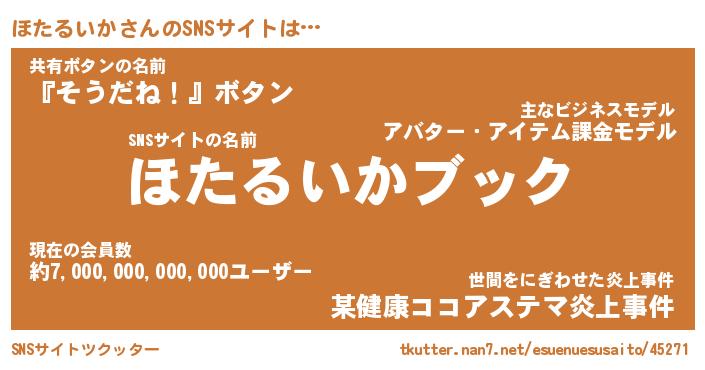 | ファンタジー風あだ名 | 『ホタフェル』『エターナルホタルイカー』 |