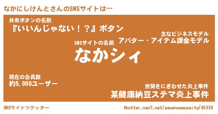 | 男性向けラノベタイトル風あだ名 | 『なかにしけんとの憂鬱』 |