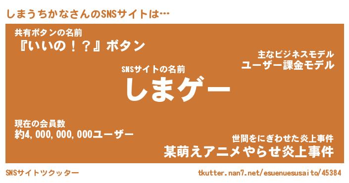 | 胡散臭い通販商品みたいなあだ名 | 『必ず成功するブレスレット…その名も「しまうちかな」』 |