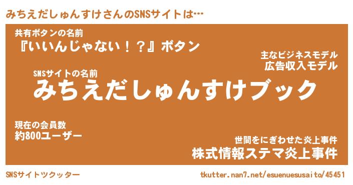 | 欧米人風あだ名 | 『マイケルみちえだしゅんすけ』 |