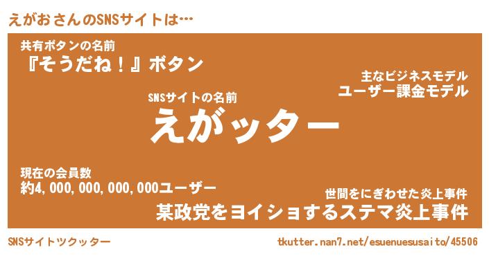 | 胡散臭い通販商品みたいなあだ名 | 『億万長者になれる霊験あらたかなお札…その名も「えがお」』 |