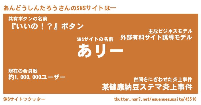 | 肩書あだ名 | 『あんどうしんたろう社長』 |