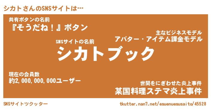 | ファンタジー風あだ名 | 『シカフェル』『エターナルシカトー』 |