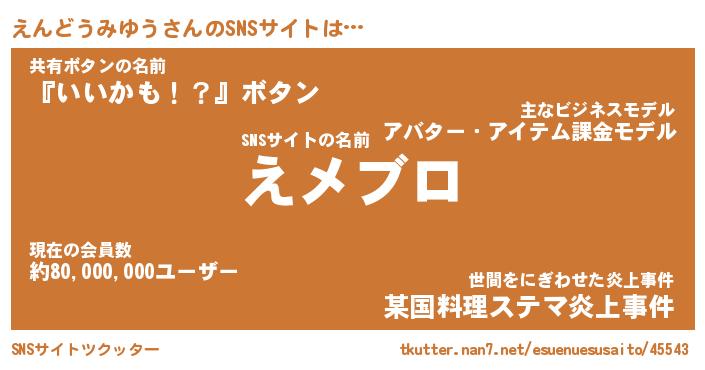 | 男性向けラノベタイトル風あだ名 | 『エンドウミユウアートオンライン』 |