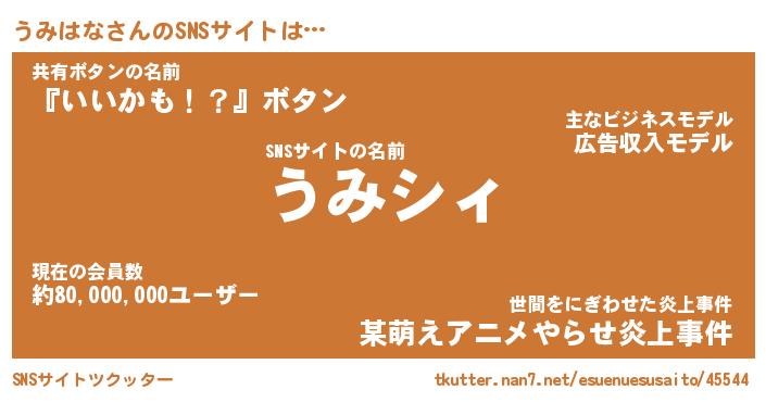 | ヘコむあだ名 | 『うみにー』『酢こんぶ』『うみ太郎』 |