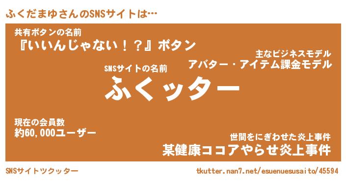| ヘコむあだ名 | 『ふくもー』『なまこ酢』『ふく太郎』 |