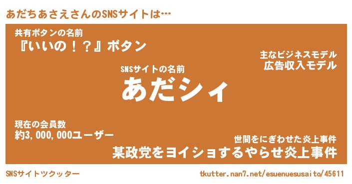| ポケモン風あだ名 | 『アダチュウ』『アダチダネ』 |