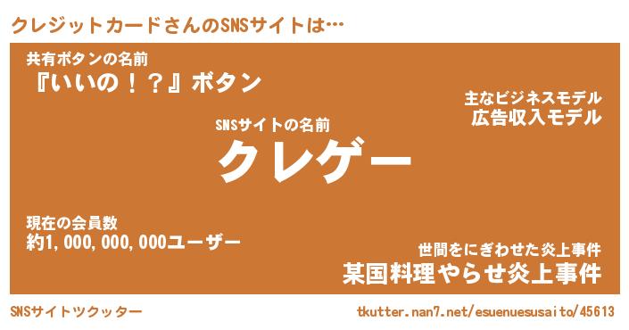 | ツイッター | クレジットカードさんのツイッターID『kikurage_idle』 |