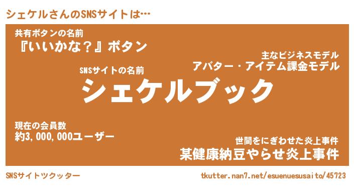 | 男性向けラノベタイトル風あだ名 | 『シェケルアートオンライン』 |