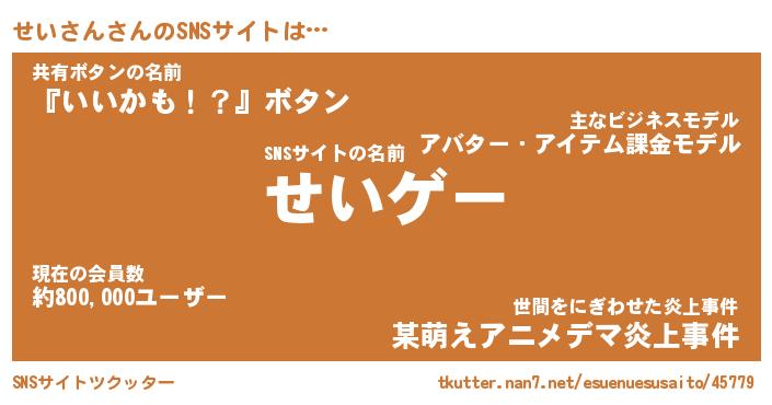 | 意味不明あだ名 | 『ペロリンせいさん』『永久保存せいさん』 |