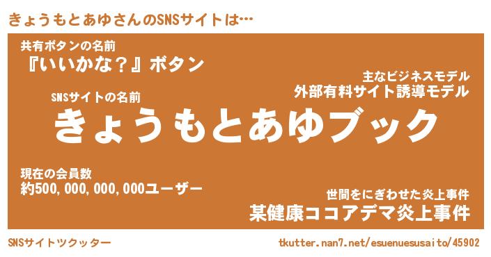 | 肩書あだ名 | 『きょうもとあゆ御曹司』 |