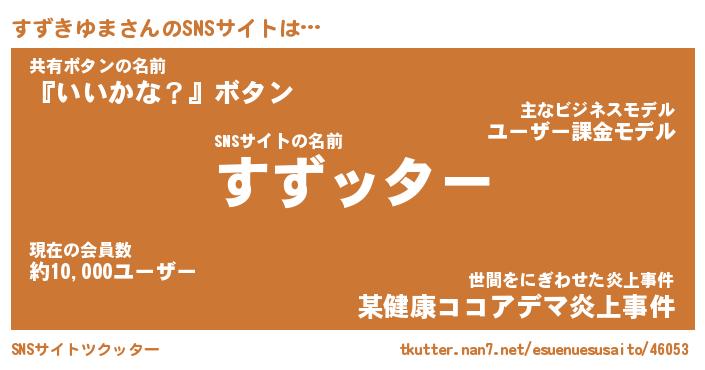 | 肩書あだ名 | 『すずきゆまCEO』『すずきゆま総理大臣』 |