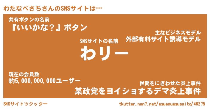 | 胡散臭い通販商品みたいなあだ名 | 『モテモテ間違いなし水晶球…その名も「わたなべさち」』 |