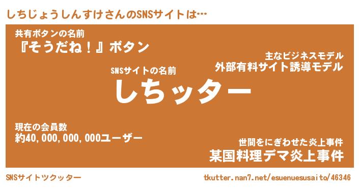 | 胡散臭い通販商品みたいなあだ名 | 『億万長者になれる霊験あらたかなお札…その名も「しちじょうしんすけ」』 |