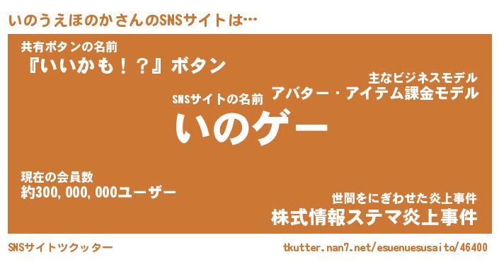 | 胡散臭い通販商品みたいなあだ名 | 『必ず成功するブレスレット…その名も「いのうえほのか」』 |