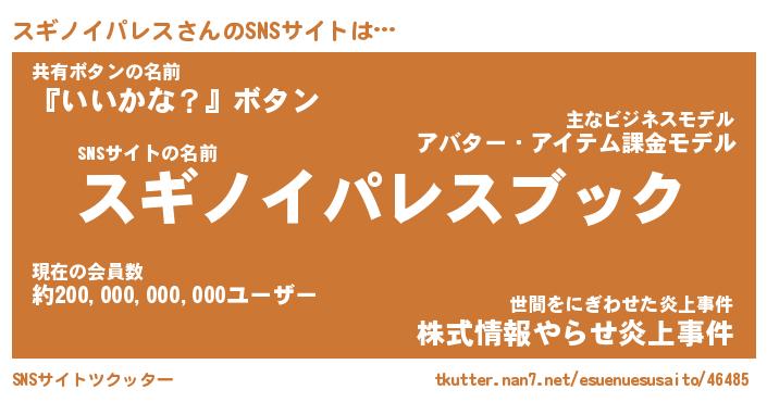 | 男性向けラノベタイトル風あだ名 | 『スギノイパレスアートオンライン』 |