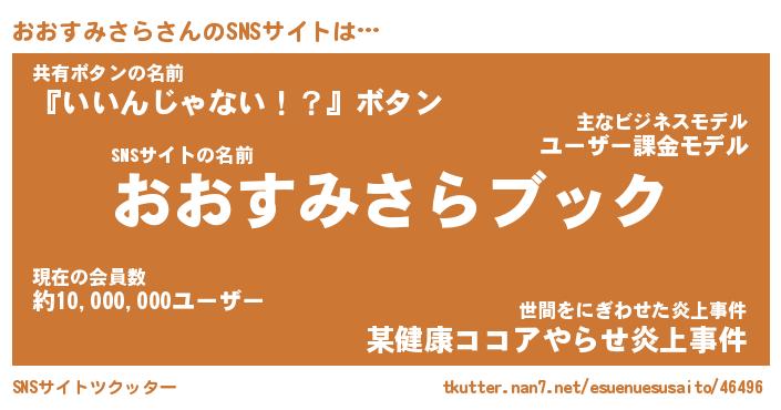 | 胡散臭い通販商品みたいなあだ名 | 『億万長者になれる霊験あらたかなお札…その名も「おおすみさら」』 |