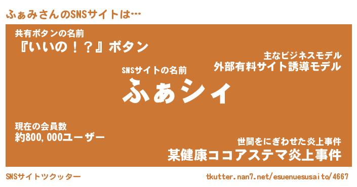 | 胡散臭い通販商品みたいなあだ名 | 『必ず成功するブレスレット…その名も「ふぁみ」』 |