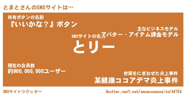 | ヘコむあだ名 | 『とまもー』『豆乳』『とまぷりん』 |