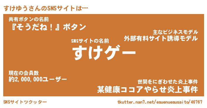 | ヒーロー風カッコイイあだ名 | 『スーパースケユウ』『幻影騎士スケ』 |
