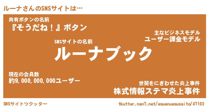 | 胡散臭い通販商品みたいなあだ名 | 『億万長者になれるブレスレット…その名も「ルーナ」』 |