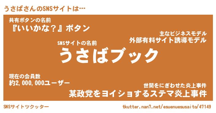 | 意味不明あだ名 | 『ペロリンうさば』『うさばフォーエバー』 |