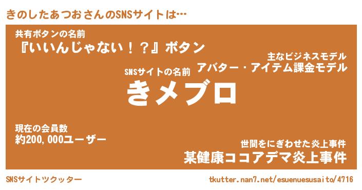 | ツイッター | きのしたあつおさんのツイッターID『katatsumuri_idle』 |