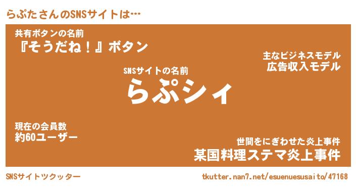 | 男性向けラノベタイトル風あだ名 | 『らぷたの憂鬱』 |