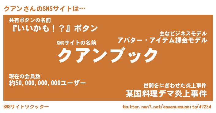 | 男性向けラノベタイトル風あだ名 | 『クアンアートオンライン』 |