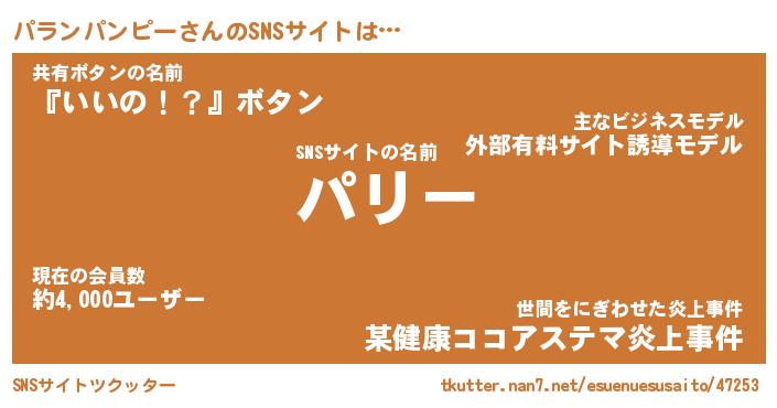 | 男性向けラノベタイトル風あだ名 | 『パランパンピーの憂鬱』 |