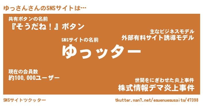 | 意味不明あだ名 | 『ペロリンゆっさん』『永久保存ゆっさん』 |