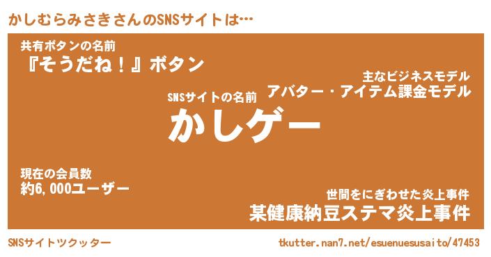 | 肩書あだ名 | 『かしむらみさき社長』 |