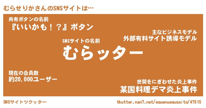 | 肩書あだ名 | 『むらせりかCEO』『むらせりか国家主席』 |