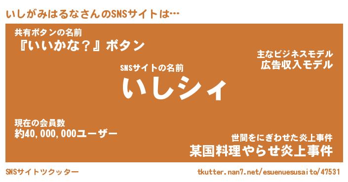| 胡散臭い通販商品みたいなあだ名 | 『必ず成功する霊験あらたかなお札…その名も「いしがみはるな」』 |