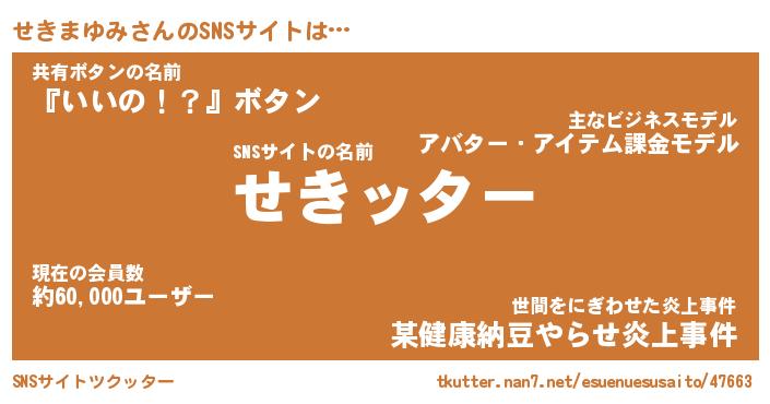 | 肩書あだ名 | 『せきまゆみ御曹司』『せきまゆみ塾長』 |