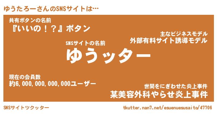 | 胡散臭い通販商品みたいなあだ名 | 『億万長者になれるブレスレット…その名も「ゆうたろー」』 |