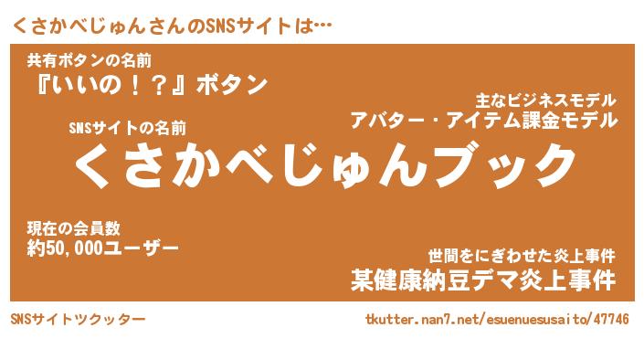| 胡散臭い通販商品みたいなあだ名 | 『億万長者になれるブレスレット…その名も「くさかべじゅん」』 |