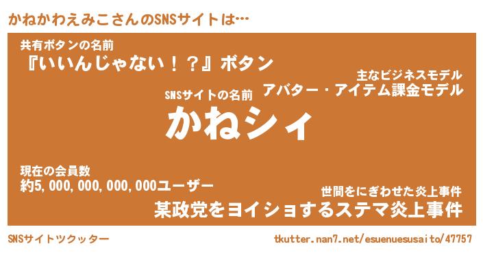 | 肩書あだ名 | 『かねかわえみこCEO』 |