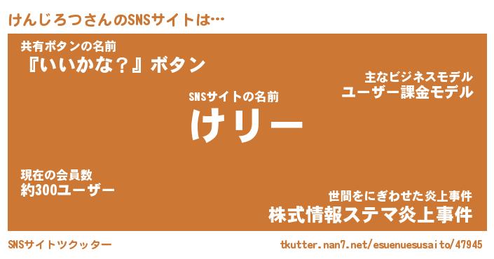 | 肩書あだ名 | 『けんじろつCEO』『けんじろつ大統領』 |