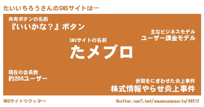 | 男性向けラノベタイトル風あだ名 | 『タイイチロウアートオンライン』 |