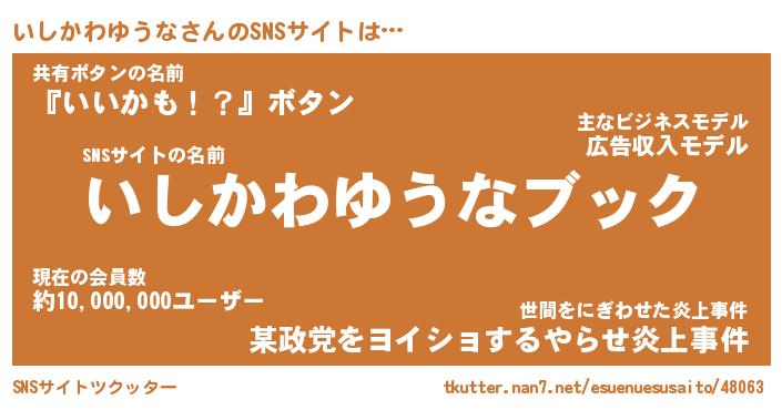 | 女子向けラノベタイトル風あだ名 | 『誰かこのいしかわゆうなを説明してください! ~契約から始まるウェディング~』 |
