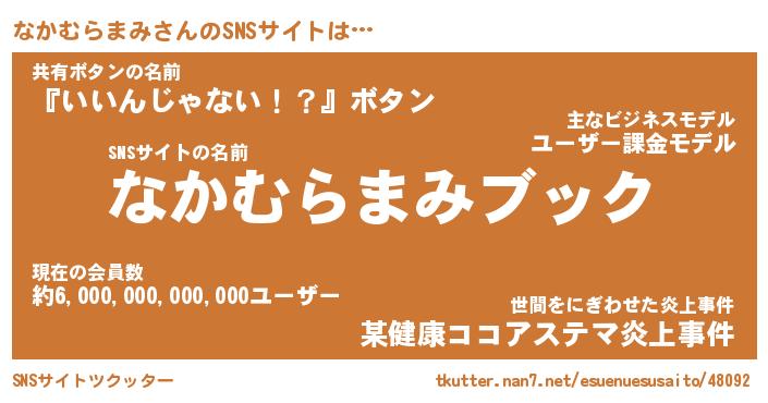 | 女子向けラノベタイトル風あだ名 | 『誰かこのなかむらまみを説明してください! ~契約から始まるウェディング~』 |