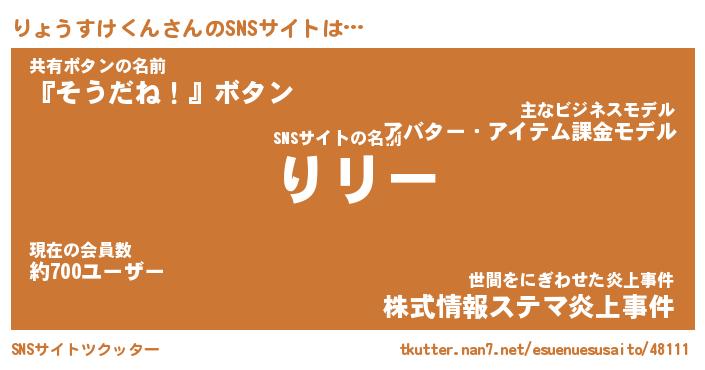 | ツイッター | りょうすけくんさんのツイッターID『masyumaro_nyan』 |
