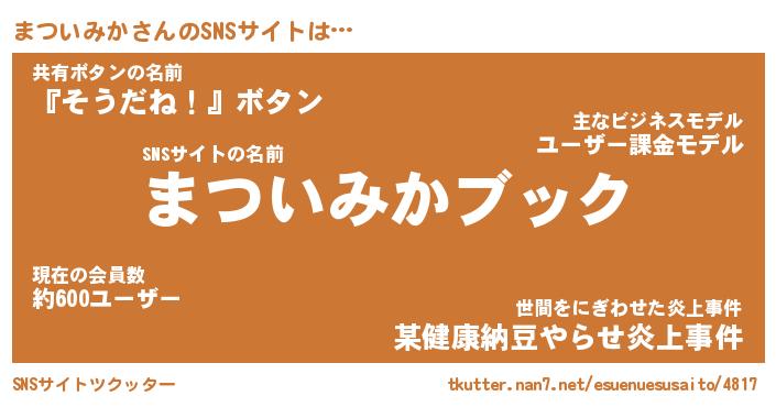 | 肩書あだ名 | 『まついみかCEO』『まついみか総理大臣』 |
