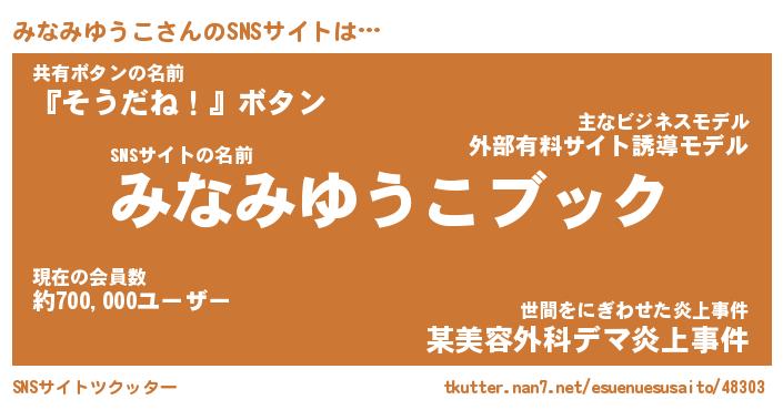 | 胡散臭い通販商品みたいなあだ名 | 『億万長者になれるブレスレット…その名も「みなみゆうこ」』 |