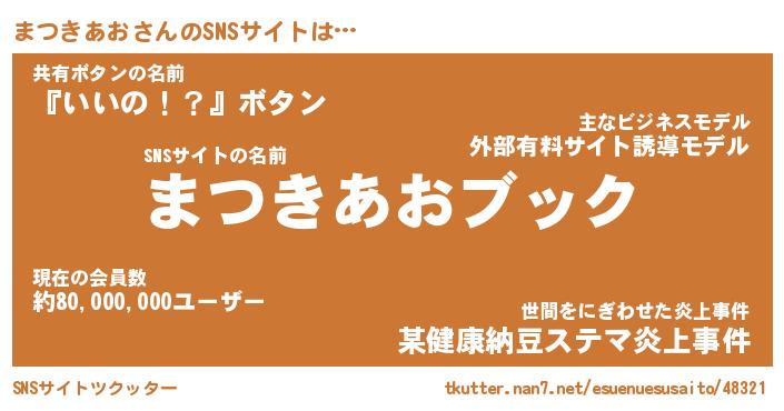 | 胡散臭い通販商品みたいなあだ名 | 『億万長者になれる霊験あらたかなお札…その名も「まつきあお」』 |