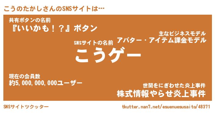 | 胡散臭い通販商品みたいなあだ名 | 『必ず成功する霊験あらたかなお札…その名も「こうのたかし」』 |